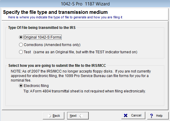 Note, the roll forward feature will not bring forward any of your financial data. Rather, it is intended to save you the trouble of reentering all of your recipient and filer contact information, as well as your security settings and transmitter information.