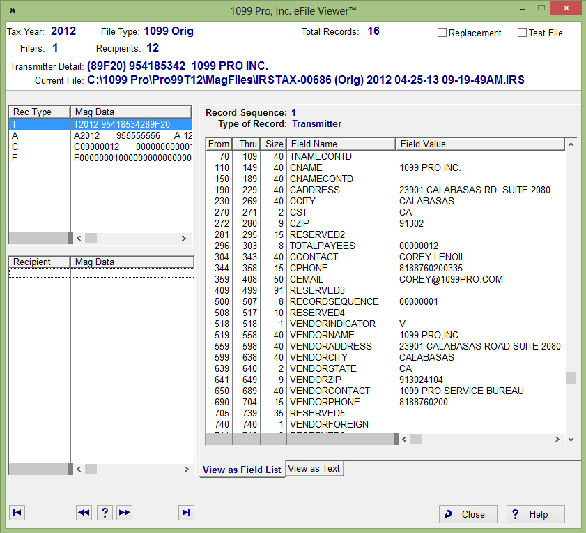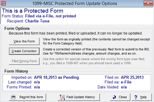 Note, the roll forward feature will not bring forward any of your financial data. Rather, it is intended to save you the trouble of reentering all of your recipient and filer contact information, as well as your security settings and transmitter information.