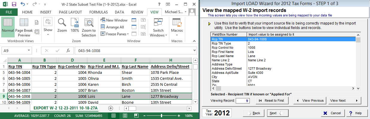 Export to Excel, delimited, CSV, or TAB file which can then be mapped and imported into W-2 Pro.